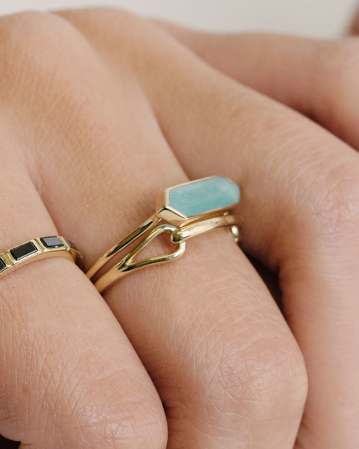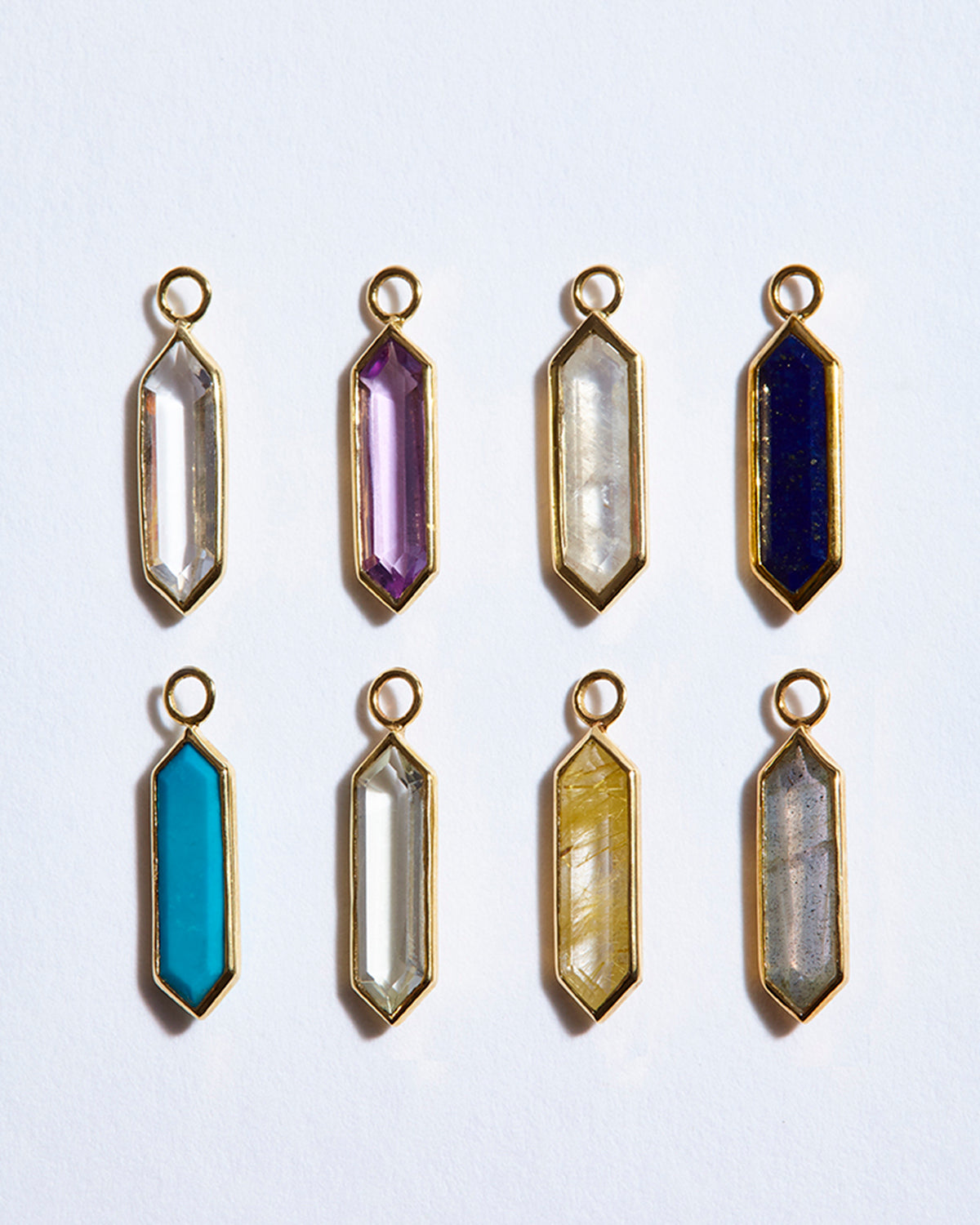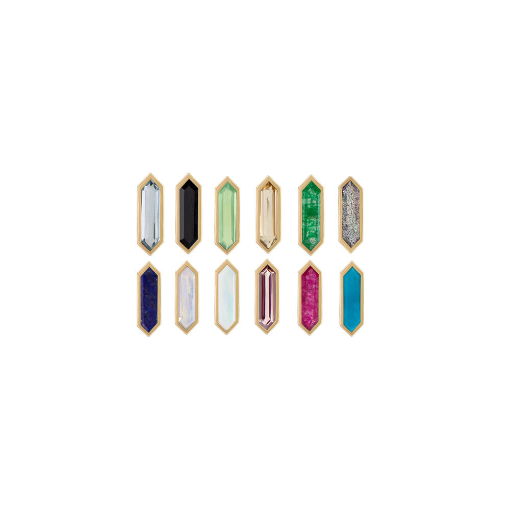 The gemstone Hexa & Maison collection features a rainbow of gemstones. All of our métier hexa and maison plaques work with our plaque, hoops, chains & bracelets. The collection also features beautiful gemstone rings.